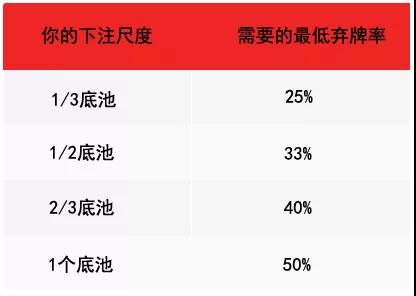 由于通常的持续下注尺度是1/2底池、2/3底池,他们需要对手在33%和40%的时候弃牌。你的对手会那么频繁地弃牌吗?