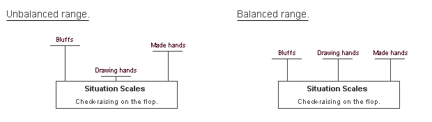 如果你在特定情形下仅以一种方式玩一定牌力的牌,你这个范围就不平衡。
