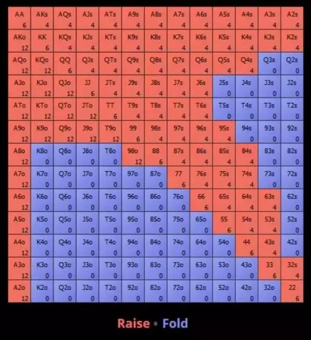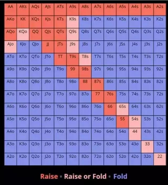 开池加注者的位置越靠前,你的3bet范围就应该越紧。在9人桌游戏中面对枪口位的加注时,The Poker Lab软件推荐的3bet范围只有2.56%。比面对上面CO位的加注时少了五倍多。从另一方面来看,面对按钮位的加注时,你在小盲位可以3bet的范围就升到了21.27%。4留心大盲位的玩家你有没有碰到过打得非常好非常激进的玩家坐在你的左边?这绝对是一个噩梦,尤其在盲注对战时。他们会不断平跟,float然后3bet,让你除了打最强的牌之外,其他牌都玩不了。与之相对比的是,如果你曾有幸在盲注对战时遭遇大紧人,就会知道每一圈偷走他们的盲注时该有多么的气定神闲了。你需要留心每一位玩家在这方面的倾向,特别是你左边的玩家,然后调整你应对他们的策略。如果大盲位的玩家很激进,用3bet和4bet来捍卫盲注的频率很高,那么你就要大幅缩小范围,避免在边缘的情况下白白输掉筹码。如果你左边的玩家玩得特别紧,那你可以放宽范围,尽可能多赢底池。5不要领先下注(也称蠢驴下注)永远都不要在小盲位蠢驴下注(哪怕所有人都是溜入底池)。这从范围的角度来看反正就是不合理。当玩家平跟一个开池加注(或溜入底池)时,他们的范围会立刻被认定为比开池的玩家更弱。如果他有强牌的话,当初就会3bet(或加注),这意味着当他选择平跟时,也就从范围内把这些牌彻底排除了。蠢驴下注从名字就知道,通常是更弱的玩家在中了一些牌之后,为了价值或保护手牌而做出的下注。由于范围上的劣势,他们更好的做法是过牌,从而保护范围内剩下的牌。在小盲位用全部的范围过牌,是有效平衡过牌范围的唯一方式。这一点之所以这么关键,是因为这能阻止对手在你对他过牌时做有利可图的诈唬。6脑中有策略,心里不慌乱盲注对战的打法既充满变数又很复杂。这是因为两位玩家都在底池投入了死钱,所以激发了他们采用更宽的范围。小盲位可以采取两种不同的策略,两种在执行正确的情况下都可以取得成功。你可以选择自己打起来最有信心的一种方法:
