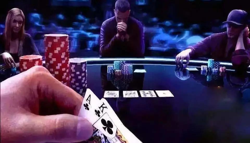 像AJ这种两高张的牌型,在这种干牌面中不仅有摊牌价值,同时,它最有可能落后的牌型就是55或99这种范围里,可即便是面对这种范围的时候,AJ也还有6张补牌的翻身机会。再者,若对手拿的是小口袋对,那他肯定会担心牌面出高张,所以说,要是转牌来个K或Q什么的,我们还可以用AJ去诈唬,这种做法常会收到不少成效。