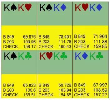 Pio不会犯用良好抓诈唬牌或弱摊牌价值牌(如果对手随后check可能赢得一个可观底池)诈唬下注的极化错误(polarization mistake)。即使在按钮玩家过度弃牌12%时用范围中每一手牌下注是正确的,用一些牌check也更有利可图。例如KK: