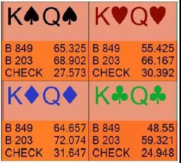 另一方面,像KQs这样的空气牌作为check牌EV极低,因为它无法有利可图地check-call,而且在按钮玩家随后check时极少赢得底池。在这个热点用KQs诈唬的EV远高于用它check-fold(KQs只在偶尔按钮玩家用差牌随后check时赢得底池):