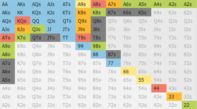 当然!我们在这手牌中拥有约24%的赢率,同时只需要再投入底池的14%即可。由于我们成牌赢下底池的赢率百分比大于底池赔率百分比,因此我们必须要跟注——这就是一个+EV的跟注。